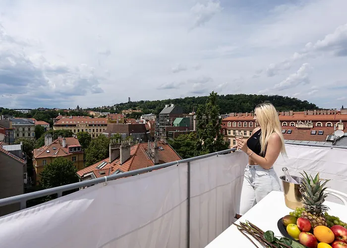 Die Luxurious Castle Suite Prag ist im Stadtteil West End, nur 5 Minuten Fußweg vom Café Slavia entfernt.  Die 2-Zimmer-Apartments bietet eine Terrasse und liegt 650 Meter vom Tanzenden Haus.